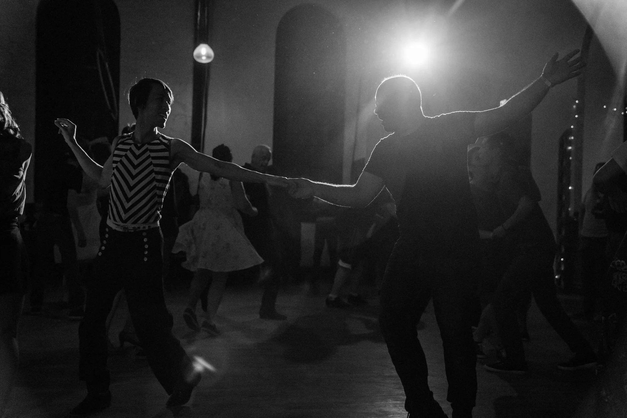 A note about class levels: While we at the Mobtown Ballroom think it’s great that you all work hard and take your learning seriously, we want to encourage you to approach “levels” with a hefty grain of salt. The Lithuanian Hall is much smaller than Mobtown, which means that most students will be in the intermediate track. Both levels will offer equally valuable information, levels mean nothing, and dancing is supposed to be fun. Please consider how the way you approach classes impacts your experience and the experiences of people around you. Let’s try to take care of ourselves and each other by not taking ourselves too seriously.